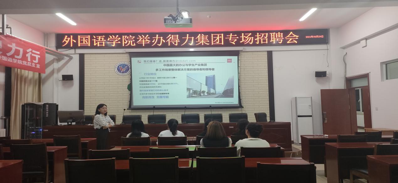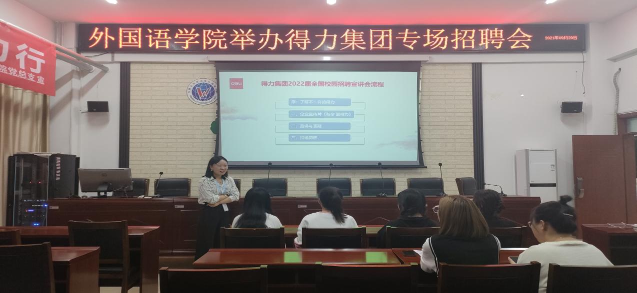 2021年9月29日晚上八点半,pa捕鱼官方网站在明德楼A205为得力集团举办专场招聘会。