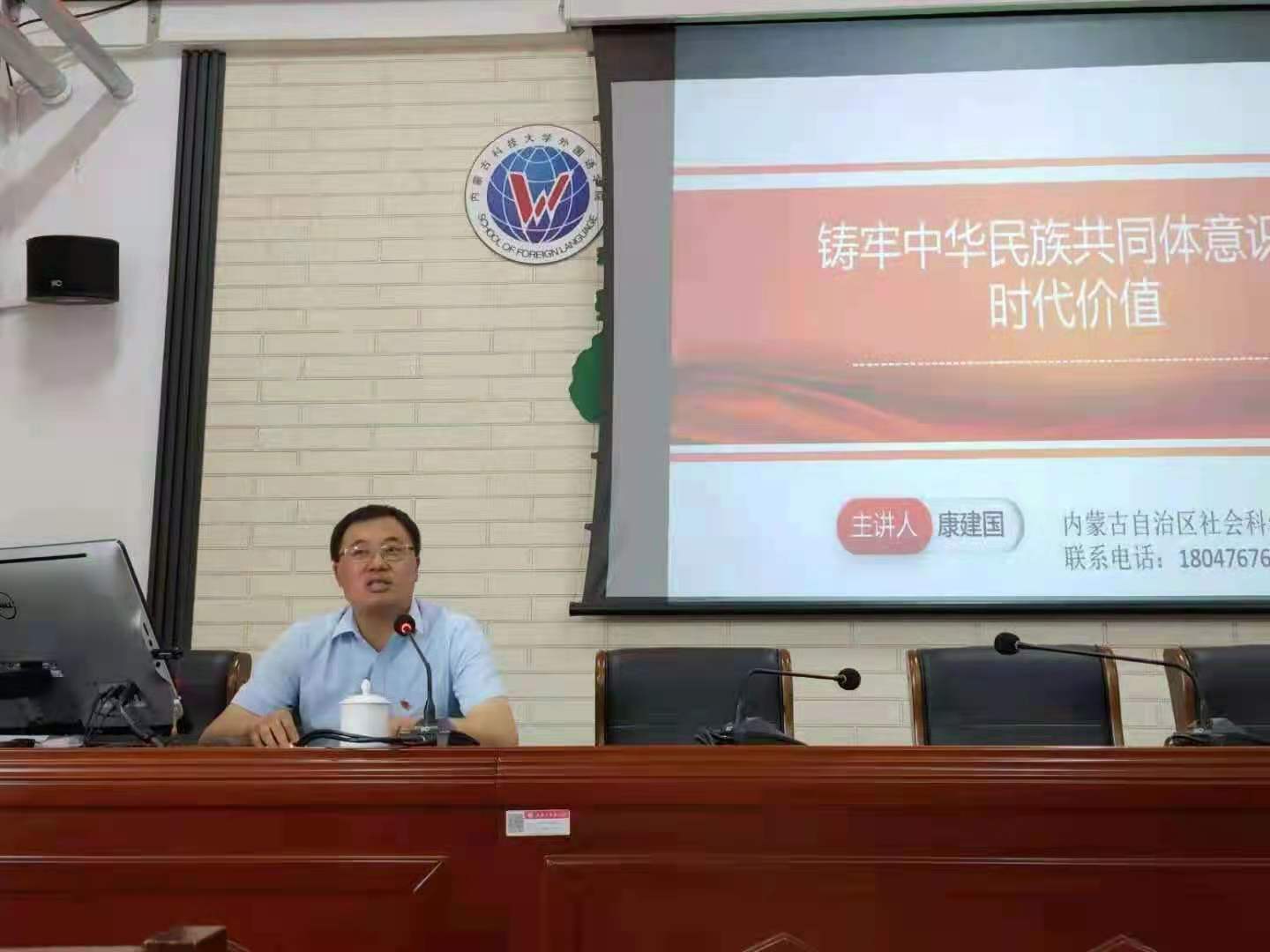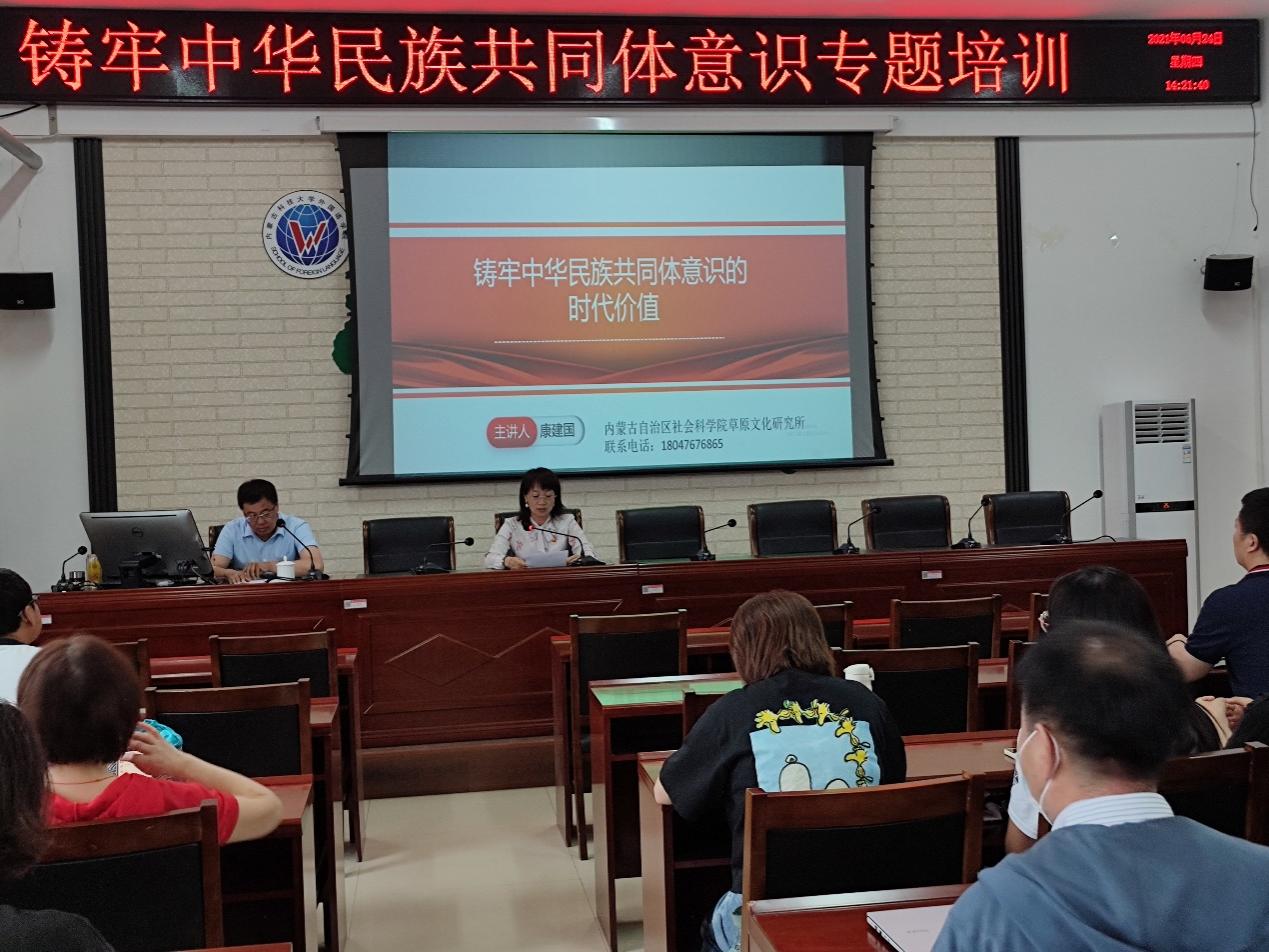 6月24日下午,pa捕鱼官方网站邀请内蒙古社会科公司草原文化研究所康建国研究员为公司全体教师、员工党员、员工干部做了题为“铸牢中华民族共同体意识的时代价值”的专题培训,外国语公司党总支书记张利敏主持专题培训。
