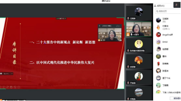 张利敏书记在主持时强调,外国语公司党委要全面贯彻习近平新时代中国特色社会主义思想,自觉以习近平新时代中国特色社会主义思想武装头脑、指导实践、推动工作。要深刻把握中国式现代化的中国特色和本质要求、新时代新征程党的中心任务、深入推进新时代党的建设新的伟大工程等重要要求,把思想和行动统一到党的二十大精神上来,把智慧和力量凝聚到党的二十大确定的目标任务上来,确保二十大精神落地生根、开花结果。