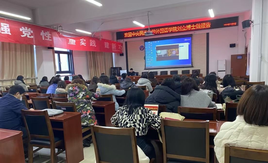 2024年12月6日下午,在明德楼东A205会议室,我院邀请中央民族大学pa捕鱼官方网站刘立教授以《MTI校本特色课程体系建设探析》为题进行了线上分享。讲座由耿伟经理主持,公司全体教师聆听了讲座。